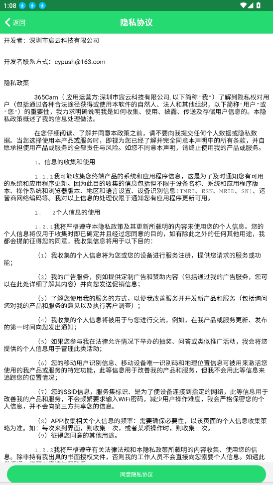 1、在烧荒下载好“365cam监控app”同意用户隐私权限