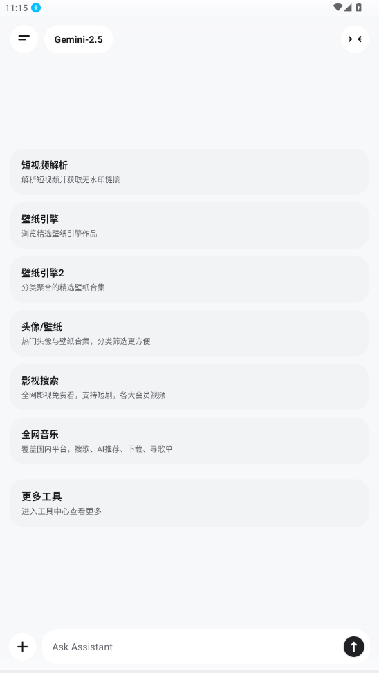 酷软工坊全新优化升级,内置资源丰富,分区详细,像是头像壁纸、手机壁纸、短视频解析、影视搜索、音乐等等一应俱全!新增ai对话窗口,你想知道的都可以问他!该软件是完全免费的,操作简单易上手,感兴趣的小伙伴们千万不要错过了!