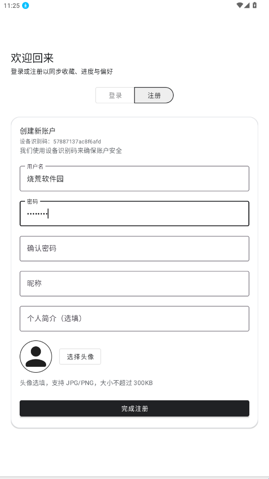 自定义设置用户名,密码,昵称后,点击最下方的完成注册即可,然后就可以直接登录进入了