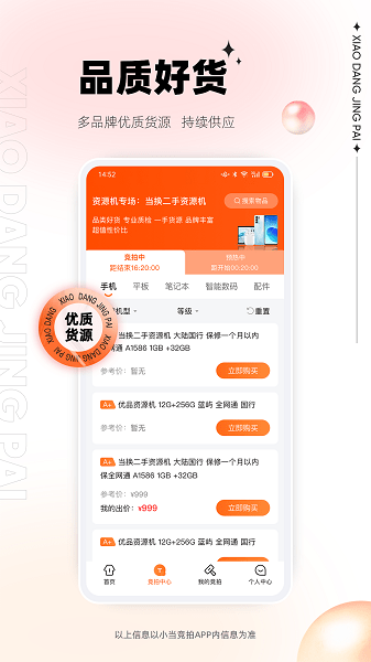 1、小当竞拍:一手货源0服务费,专业二手3C优品交易平台