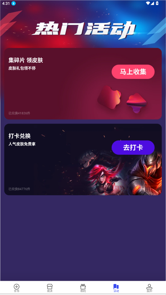 1、真正可以领取皮肤的软件,只要玩家拥有足够高的活跃度和金币就能够轻松的获取到各种奖励。