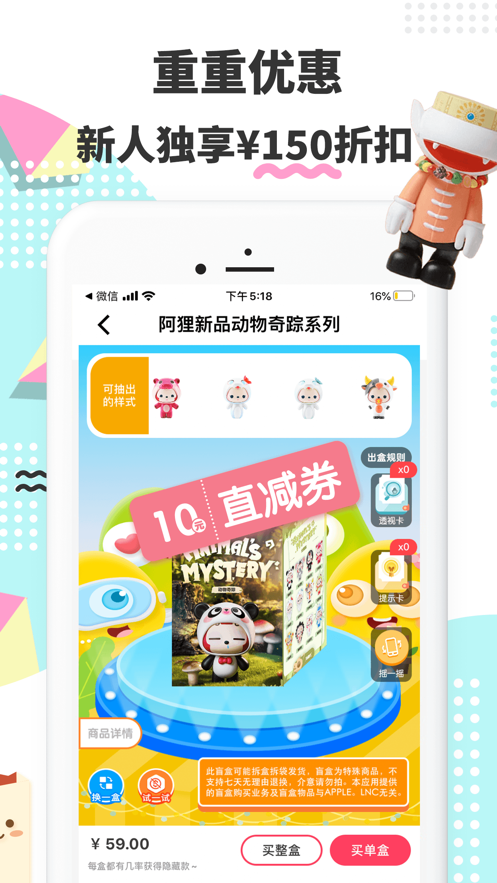1、这是一款线上盲盒贩售商城,时下流行的盲盒这里都有上架;