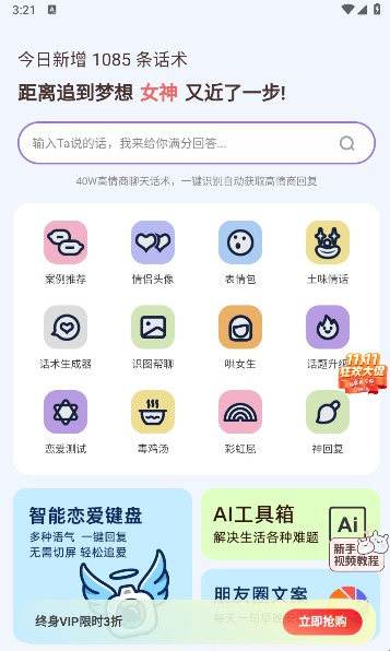 1、聊天回复宝典:搜索一下,给你满分精彩回复。