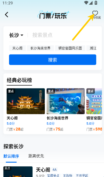 心晴旅行手机版APP查看门票/玩乐收藏记录?