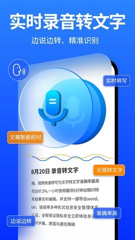 4.打开APP内的实时语音转写功能,APP会实时将录音内容转换为文字