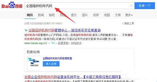 2、首先打开百度,搜索全国组织机构代码,点击第一个进入;