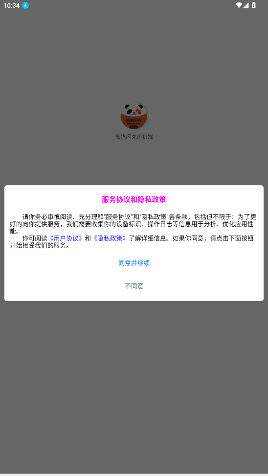 1、在烧荒下载好“熊猫闪充司机端”同意用户协议
