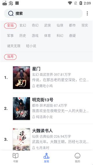 2、武侠仙侠、军事历史、玄幻科幻、都市等男频小说分类详细、多,以及女生喜欢看的现代言情、青春校园、古代言情、幻想言情等类型详细,选择感兴趣的类型看书也不错;