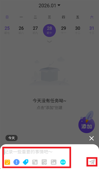 3、填写日程相关信息,点击右下角飞机按钮保存即可