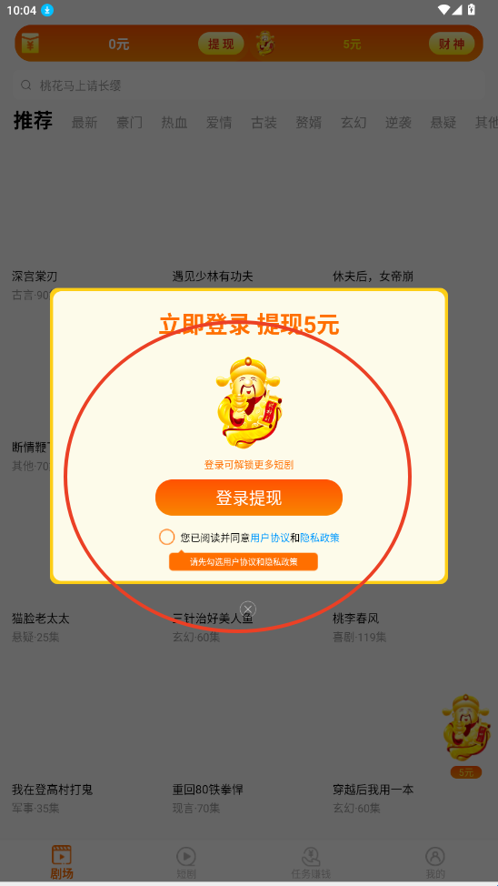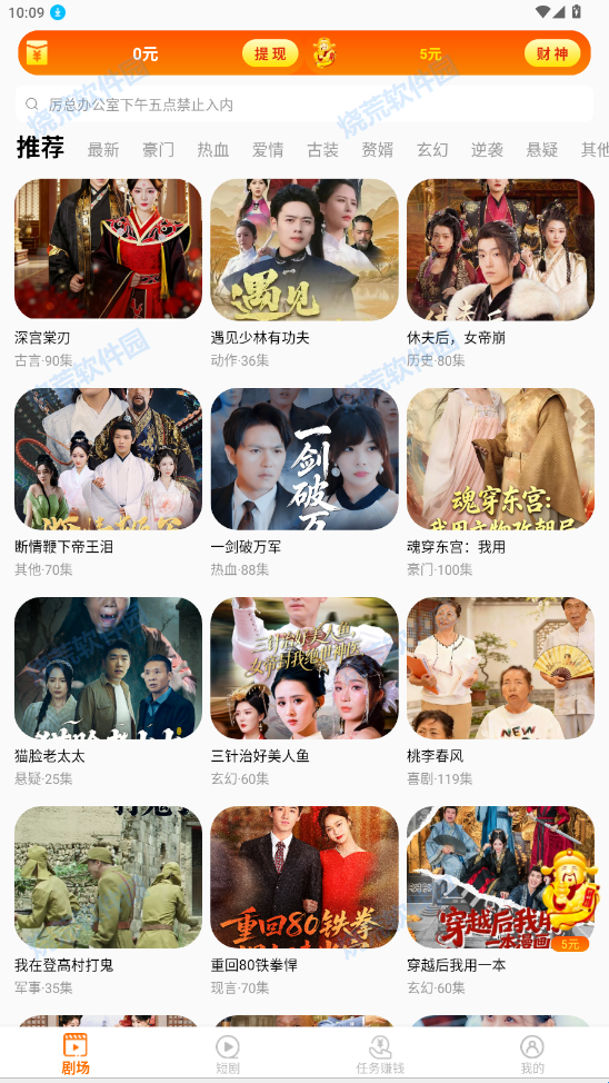 1、在烧荒下载好“免费短剧财神”点击进入,即可领取红包喔
