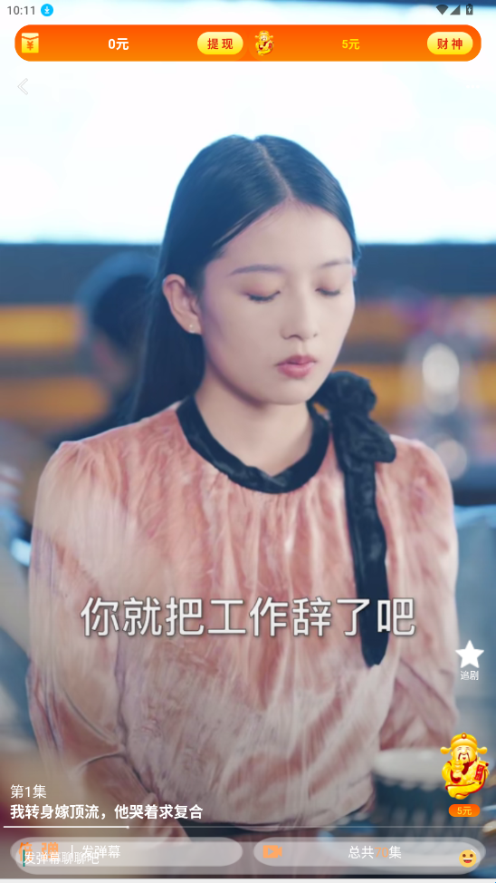 免费短剧财神app是一款可以一边看短剧一边赚零花钱的软件,注册登录即可领取新人大礼!内置海量精品短剧,题材丰富,剧情不拖拉,并且都是完全免费无需充值会员的喔!并且您看到越久其红包奖励就越丰厚,支持一键提现至内!感兴趣的小伙伴们千万不要错过了!