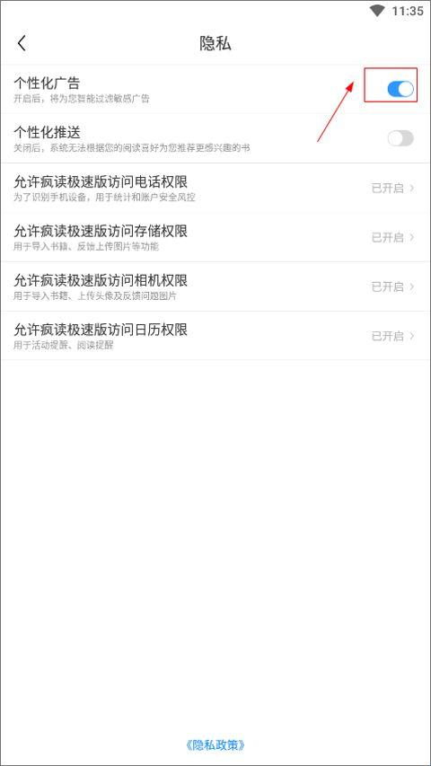 3、最后点击关闭【个性化广告推荐】即可。