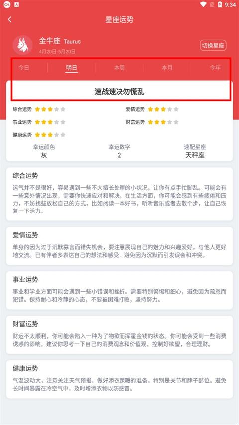 4、还可以查看今日、明日、本周、本月乃至今年的运势。