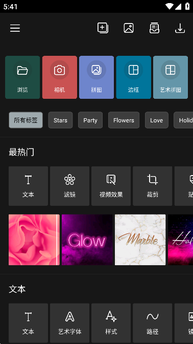 5、令人印象深刻的文本编辑工具旨在通过丰富的可自定义字体,颜色,纹理和形状集合在您的照片上创建漂亮的信息。