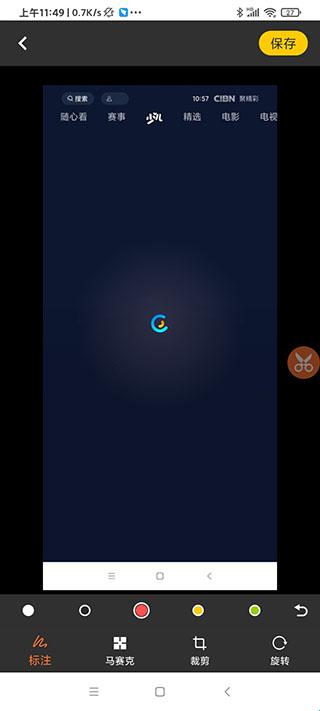 5、看到那个橙色小剪刀悬浮框,点击可以滚动截屏长图功能