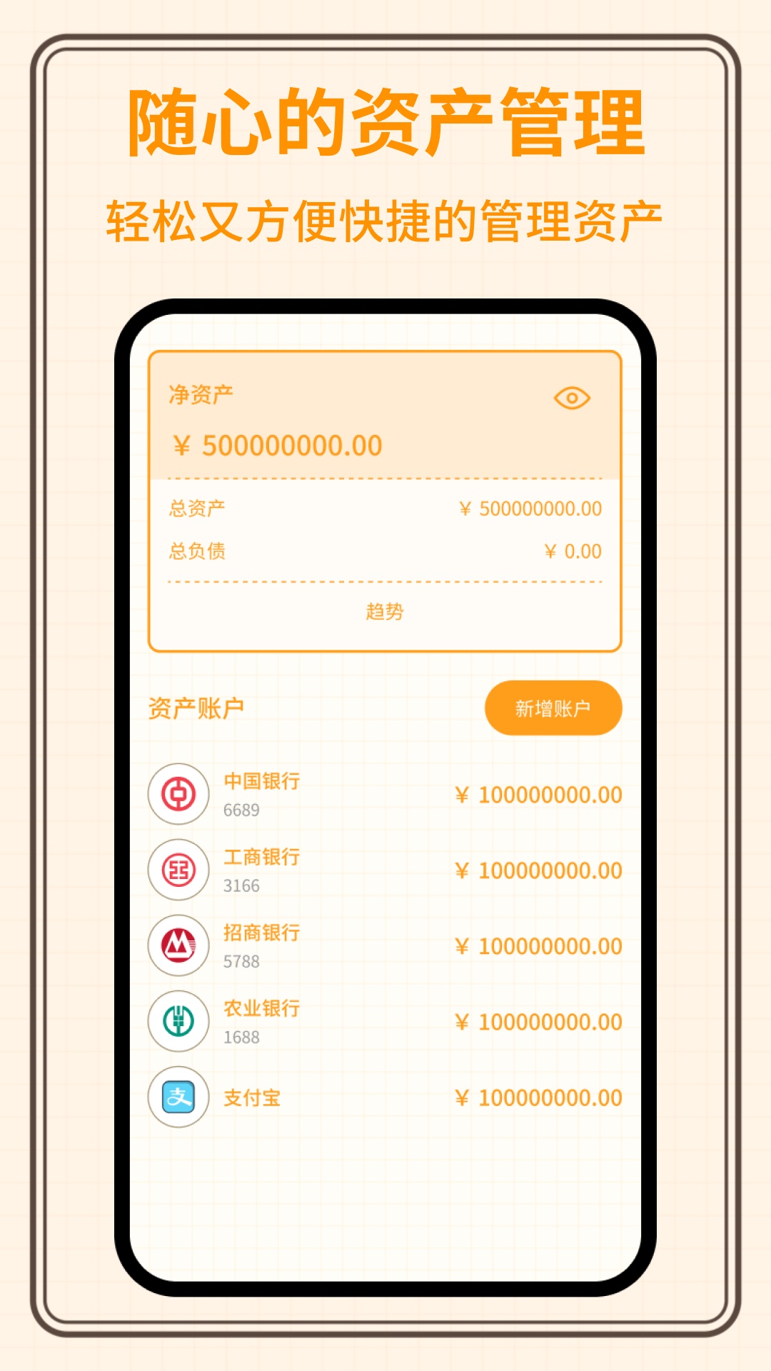 3.资产管理:现金、储蓄卡、工资卡、信用卡、理财、基金轻松管理,让每笔收入和支出都明明白白;