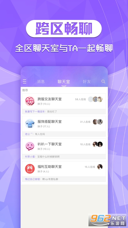 跨区畅聊,全区聊天室与TA一起畅聊,兴趣交友,寻找游戏知己;