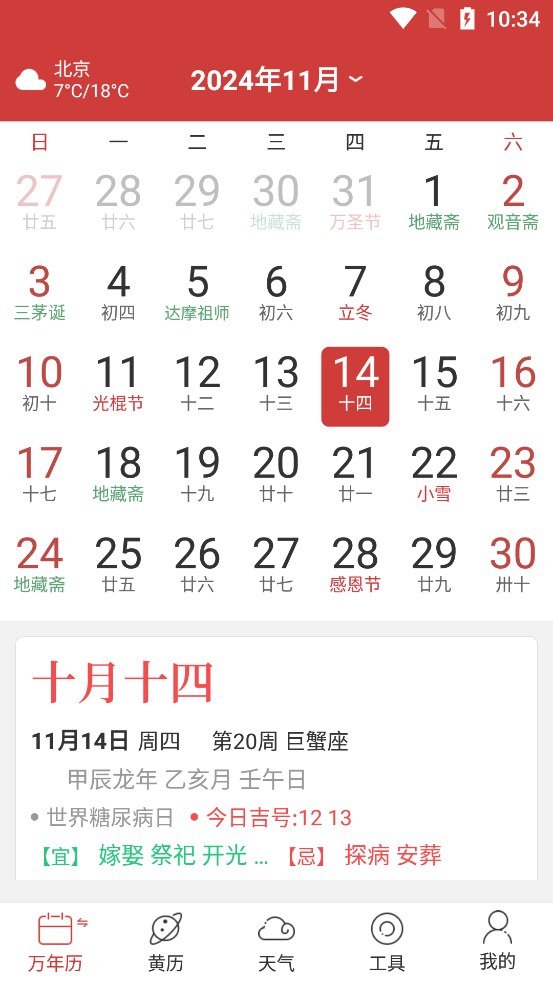 1、日历:详细的日历信息,集齐节日节气、节假日安排于一身;
