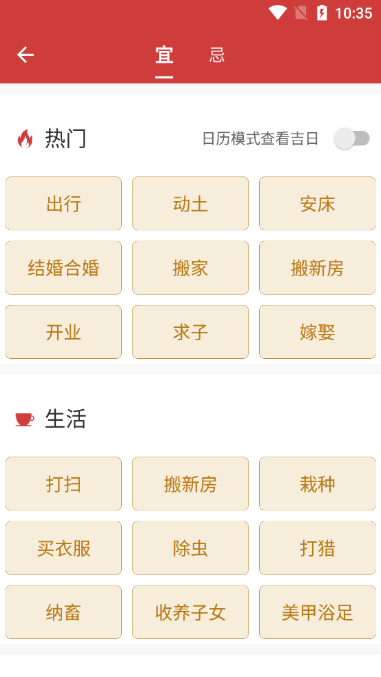 2、黄历:黄历查询、择吉日,样样正确又细致;