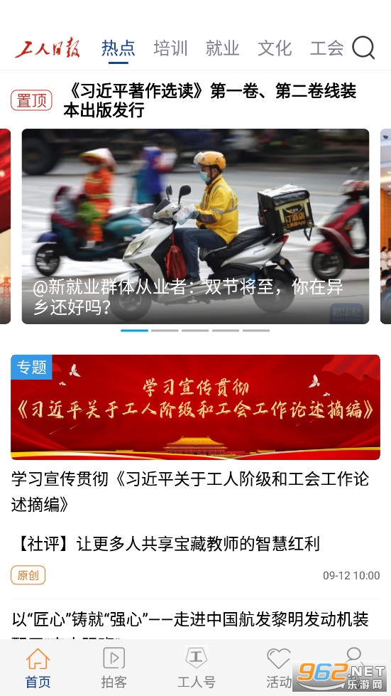 《工人日报app》是工人日报社推出的一款为广大工人群体量身打造的新闻资讯应用。该app致力于为广大工人群体提供最新、最快、最权威的工人新闻资讯,以及实用的服务信息和生活娱乐内容。软件有着首页、拍客、工人号、活动等多个栏目,可以自由选择去阅读观看。