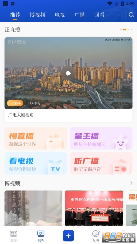 《无锡博报APP》是无锡当地一家非常权威的新闻资讯平台,每天24小时不间断更新发布最新最热资讯,国内外新闻、身边大小事,都会向你推送。大家在首页还能订阅自己喜欢的新闻版块,或者收看相关电视视频直播。新版本中还推出了新的视听频道,听广播、看电视、听新闻、精彩回放自由选择。