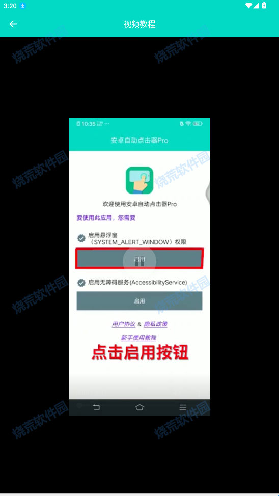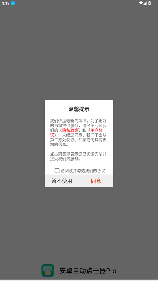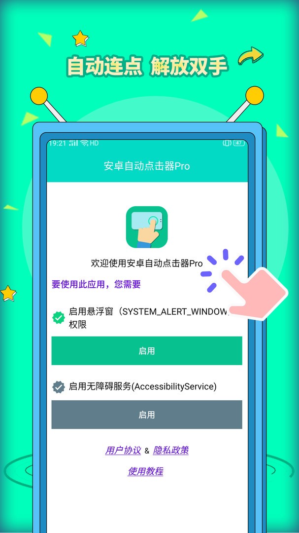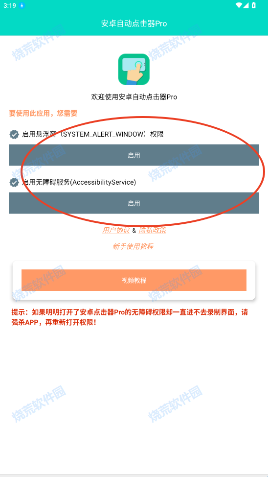 1、在烧荒下载好“安卓自动点击器Pro”点击进入同意用户隐私权限
