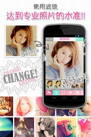 Decopic是一款可爱的精简版照片编辑应用软件。它是专门为喜欢可爱”的中国的女性朋友们设计的免费照片应用软件。可以美化照片,把照片装饰得更可爱。内含300多种图章,相框! 装饰后的照片可以直接保存到手机里,也可以马上上传到人人网,新浪里,特别方便。 计划每个月添加装饰图案,新的装饰图案从现在起会不断的推出。 计划此程序可以被用来做各种各样的事情,还有更多神秘惊喜,敬请期待!