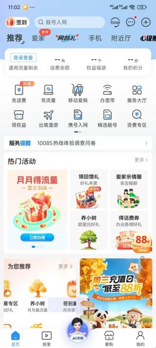 2、通信爆点:话费、流量、积分、账单、想看什么,应用尽有。