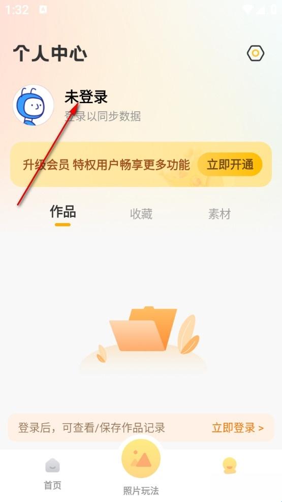 2、再点击上方未登录开始登录