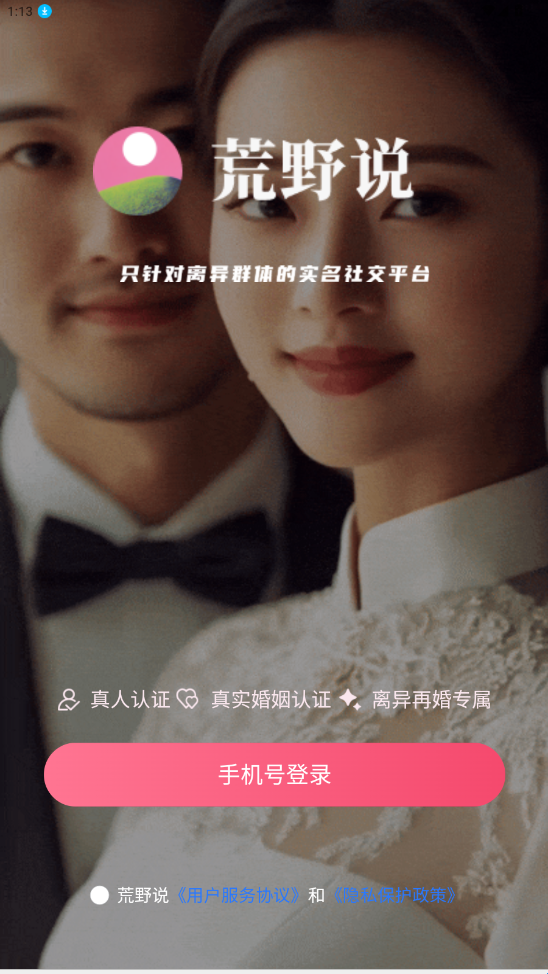 荒野说app谁款专注高质量再婚交友的平台,专为离异、丧偶等经历婚姻变迁的单身人士打造,旨在帮助寻找靠谱二婚伴侣,通过实名和婚史双重机制进行认证,从源头杜绝虚假信息与动机不纯者。