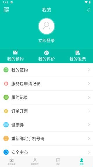 3、家庭医生:在App底部找到“家庭医生”板块,进入后能查看已有家庭医生信息,也能添加新的家庭医生。
