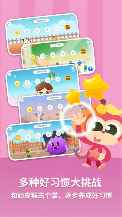 一款儿童习惯养成应用,专为3-12岁儿童设计。通过动画故事、互动工具及打卡奖励机制,辅助家长引导孩子培养独立、自信、专注等好习惯。应用以“顽皮猴”IP为核心,结合科学教育理念,将习惯培养融入趣味场景,解决儿童习惯养成中的“抵触”“难坚持”问题,已覆盖数十万家庭。