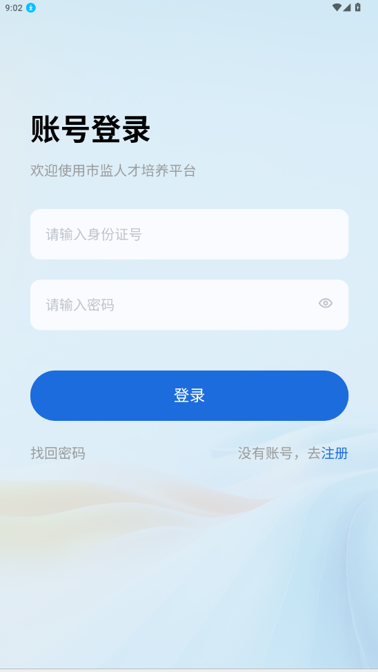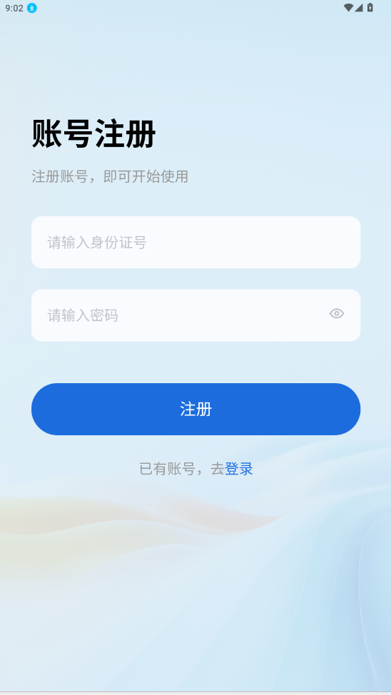 2.输入身份证密码完成登录,没有账号的点击注册