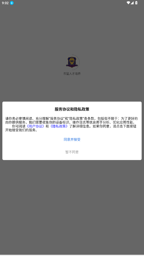 1.打开市监人才培养app,点击同意隐私政策