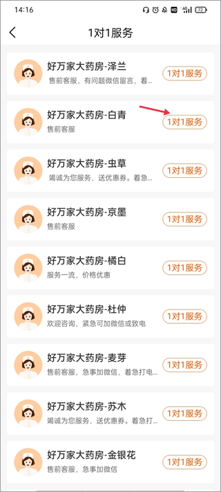 3、列表里有很多的客服可以进行询问,选择其中一个客服。