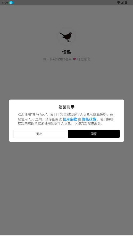 1、在烧荒下载好“懂鸟app”进入同意用户使用权限