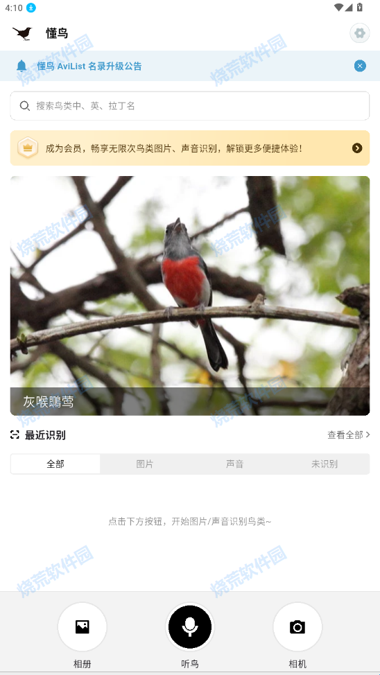 3、支持拍照、录制声音辨别鸟类喔!