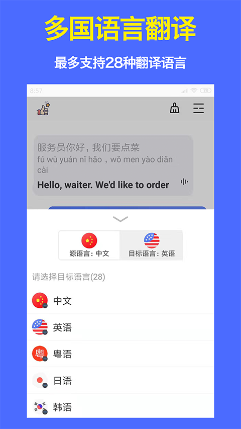 旅行翻译官app是一款非常方便的翻译软件,可以去帮助用户们在旅游出行的时候更好的去翻译各种语言,在外出履行的时候都能快速的去解决语言不通的问题,并且还能去翻译各种商品等问题!
