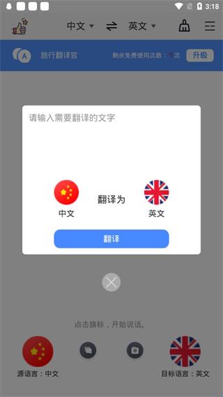 1、首先我们进入旅行翻译官,点击下方旗标就可以直接说话实时翻译了;
