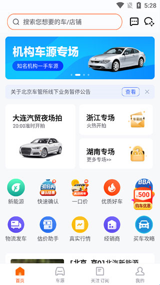 3、进入首页查看不同品牌的车辆以及拍卖直播通知。