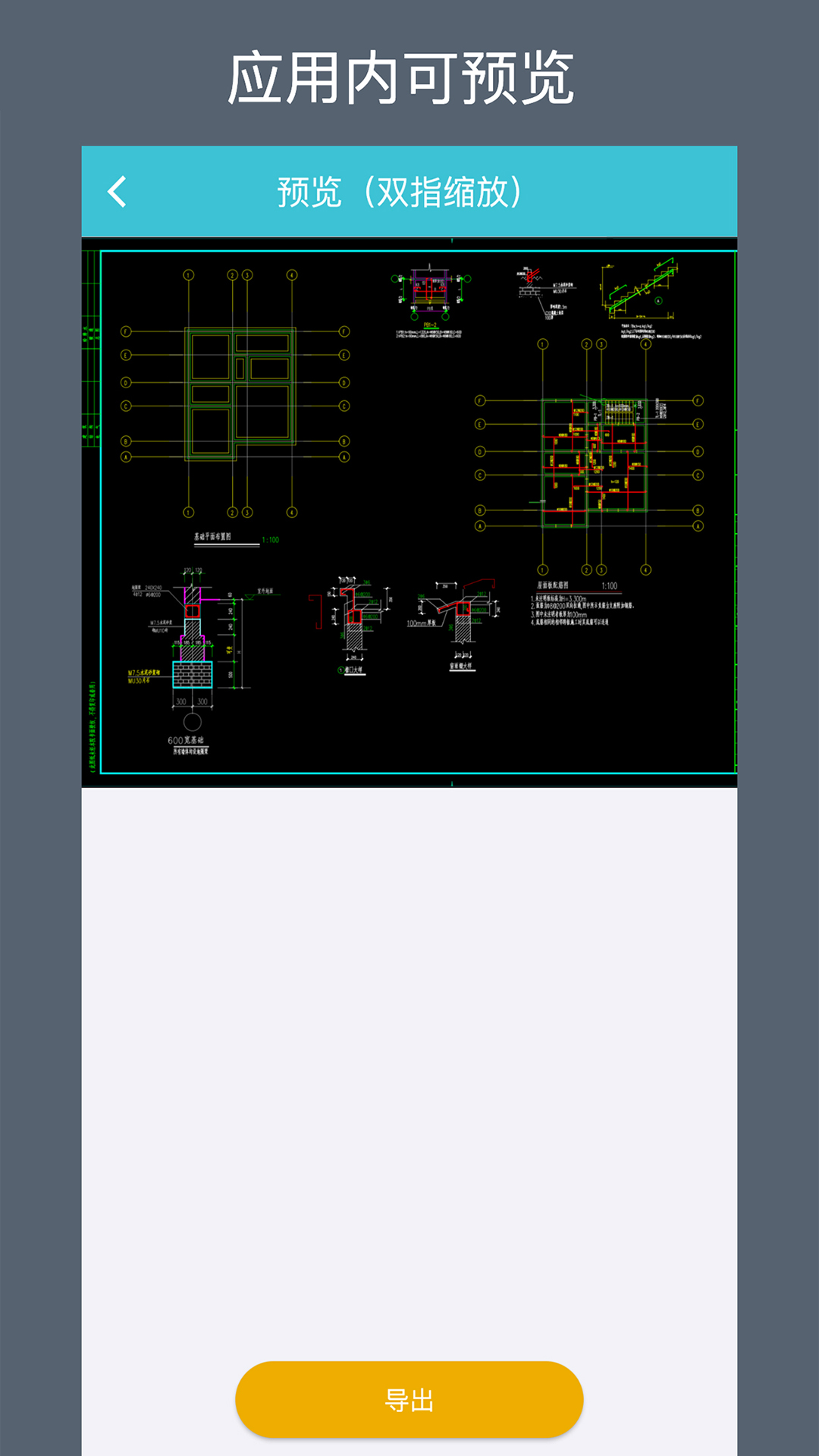 提供CAD图纸文件格式转换的办公应用。支持各版本的CAD与天正CAD格式的文件一键转成图片与PDF格式并支持在线阅读与预览。