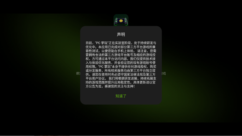 pc掌玩app是一款可以帮你把手机变声掌机的模拟器工具,只需要绑定Steam账号,就可以畅玩各类Steam游戏,可以在本地运行,无需网络也可以体验,还能模拟手柄操作方式,游戏同步更方便。
