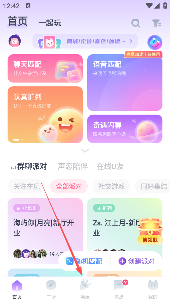 3、点击【去房间找CP】,在派对房间偶遇心动的那个ta。