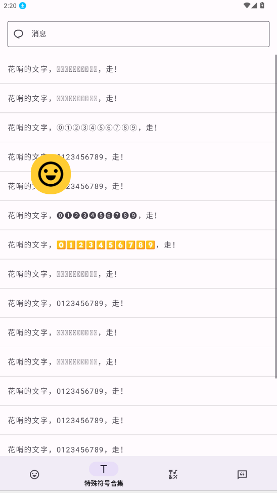 特殊符号合集是一款实用便捷的手机符号集合软件,汇聚了许多实用的符号和表情包内容,完全免费进行使用,无需登录注册,直接打开就可以开始使用,功能全面,有需要就快来在使用吧!