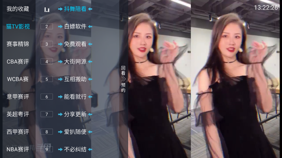 2.点击左侧屏幕可以唤起电视频道列表,电视端用户使用遥控器按菜单可以唤起。