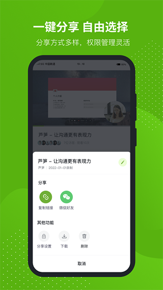 3、在线分享观看,支持加密访问 无需下载保存视频文件,即可一键分享到任意地方,不需要同时在线,就实现视频沟通。还能自由设置观看密码,保证视频内容安全。