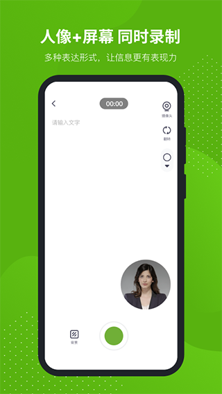 1、圆形人像+屏幕同时录制,支持多种录制形式,包括人像+屏幕以及仅屏幕,可根据录制需求进行选择,自由表达。