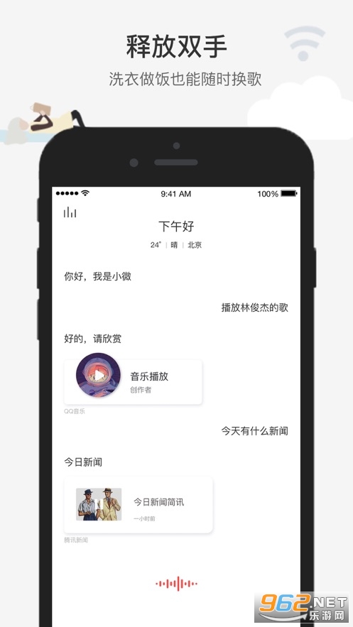 智能语音助手,可以进行对话,在不方便动手的时候直接语音操作,比如查看天气、打电话、导航等等,直接对着小微说即可,而且还有着qq音乐资源,随时听歌,有需要的朋友可以下载试试。