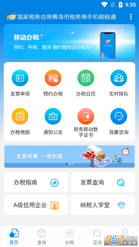 为青岛纳税人提供政策速递、咨询服务、办税帮助、纳税申报、实名认证、领用发票预约、手机预约、税企邮件、涉税查询、涉税提醒等移动办税功能。