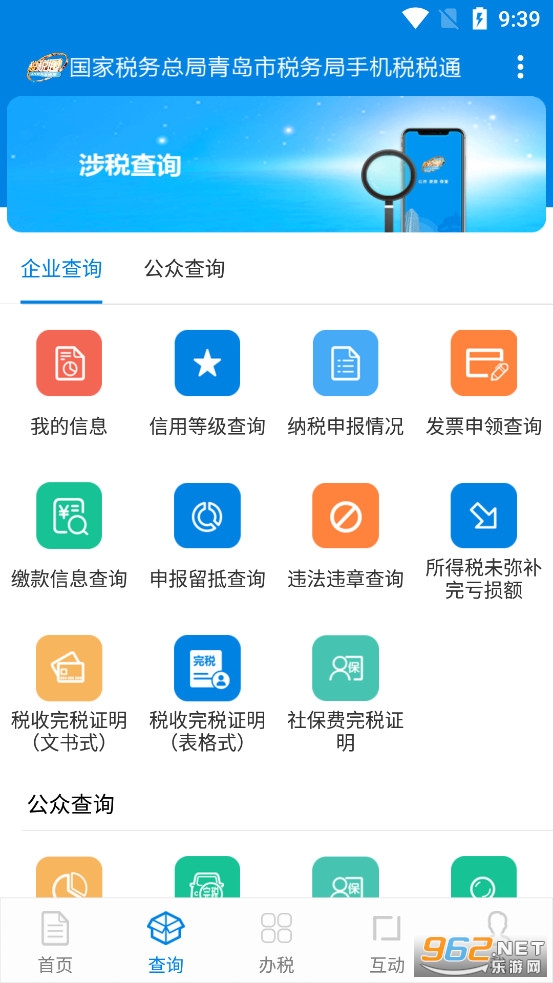 《税税通app》是国家税务总局青岛市税务局推出的一款税务综合服务平台,税税通app有着查询、办税、互动等多个栏目,在查询栏目支持个人查询和企业查询,可以查看纳税情况,在办税栏目可以申报税务,缴纳税费等。